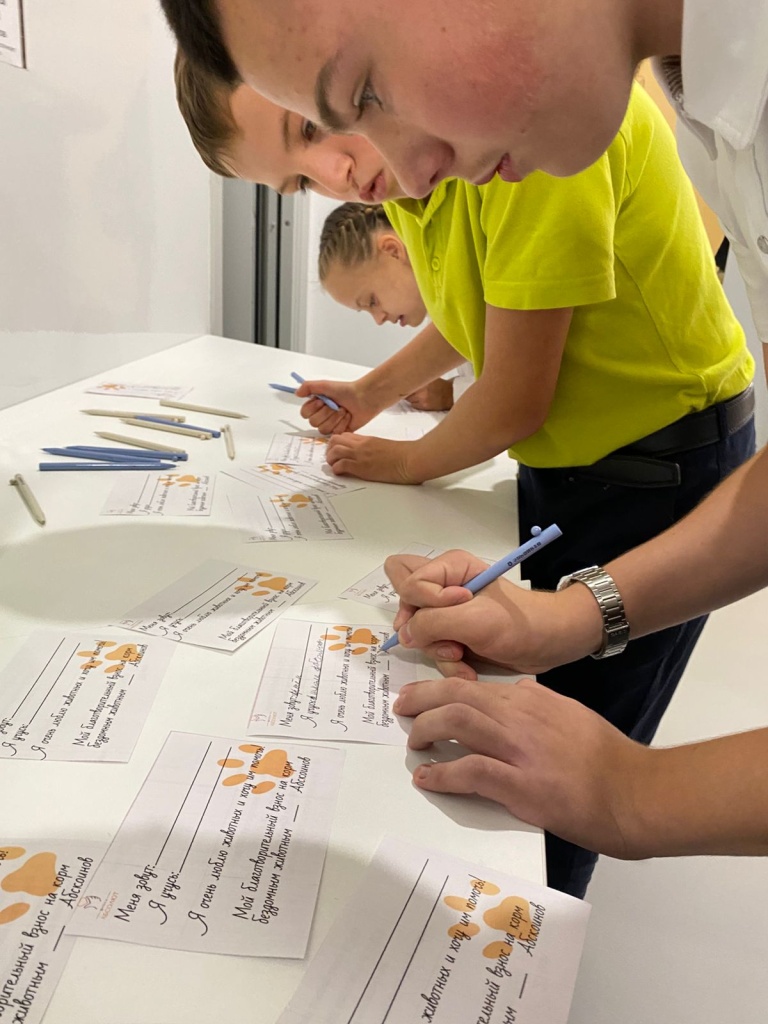 Самым ярким моментом стало то, что теория сразу же перешла в практику. Прямо во время линейки у каждого ученика появилась уникальная возможность стать тем самым благотворителем. Ребята могли заполнить специальный бланк и пожертвовать любую сумму школьной валюты – Абскоинов – на помощь подопечным Центра временной реабилитации животных «Юна».