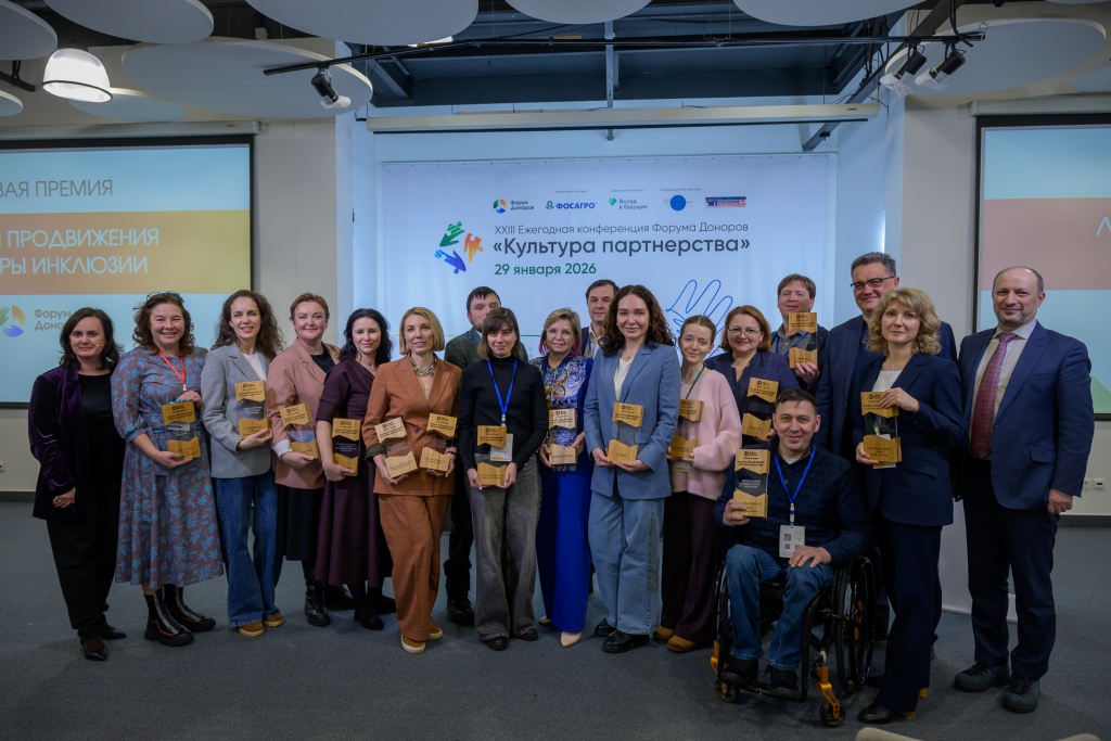Премия «Лидеры продвижения культуры инклюзии» проводилась впервые. Ее лауреатами стали 19 организаций. Лидерские практики будут продвигаться на ресурсах Ассоциации грантодающих организаций «Форум Доноров» и партнеров и на деловых мероприятиях в 2026 году.